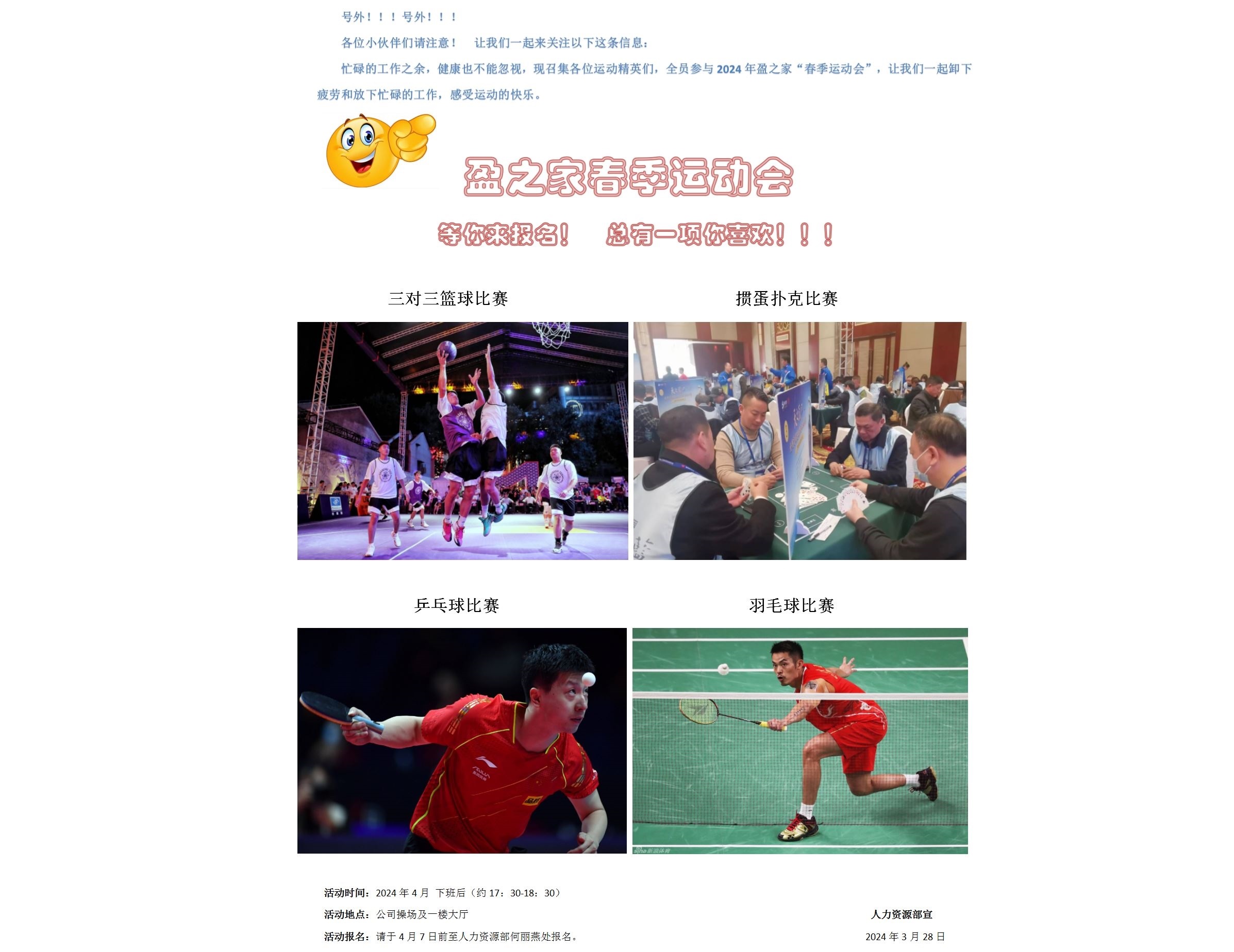 2024年盈之家春季運(yùn)動(dòng)會(huì)各位小伙伴們請(qǐng)注意! 讓我們一起來(lái)關(guān)注以下這條信息: